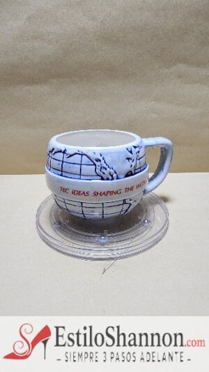 Taza Blanca tipo tazon con alto reliebe del mundo y texto en Ingles (Ideas Tecnicas moldeando el Mundo)